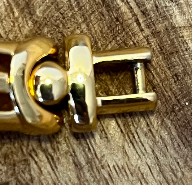 Measurements: Measures at approximately 19.7 cm in length; width measures approximately 13 mm at the widest link.